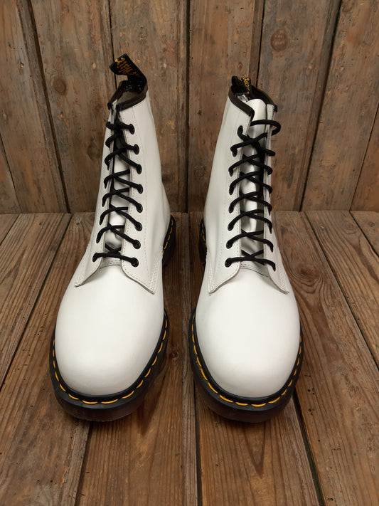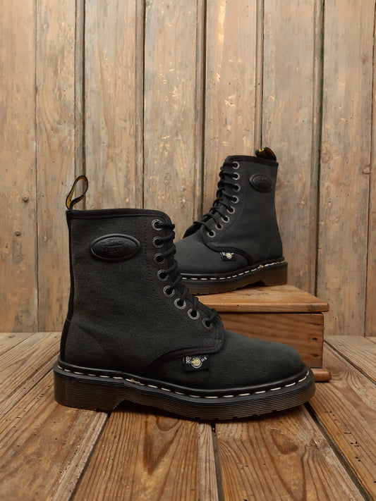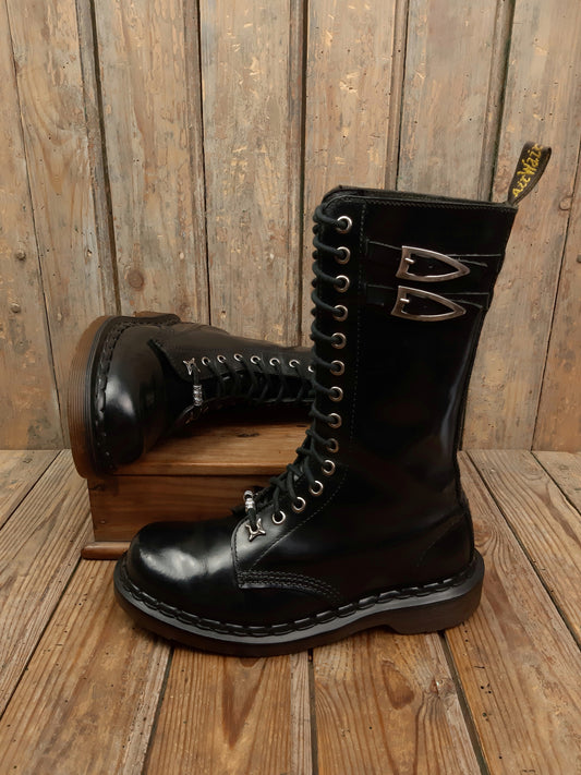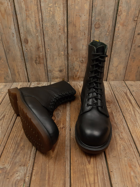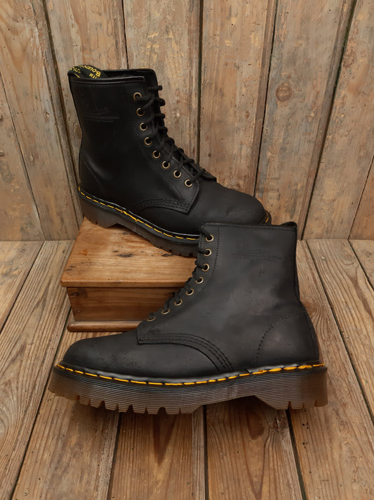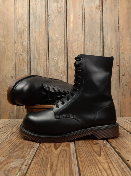 • Bottes Dr. Martens d'occasion Vintage cuir smooth noir Steel Toe coquées ancienne Collectors 41 Made in England MIE
