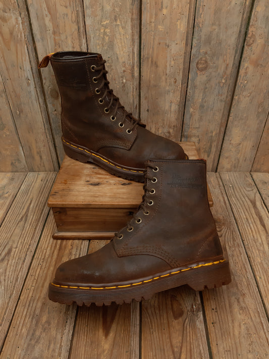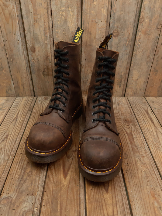 • Bottes Dr. Martens Vintage cuir gras marron Steel Toe coquées ancienne Collectors 43 Made in England MIE